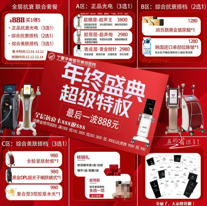 寧夏華美年終盛典推出888全層抗衰卡,熱門抗衰美膚項目任選組合,適配抗衰淡紋、緊致煥亮等多種需求,性價比超高!
