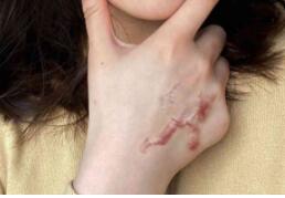 之前手上因燙傷留下的疤痕,在恢復(fù)期出現(xiàn)了增生,以至于現(xiàn)在看到手上的疤痕是有突起的,而且因?yàn)闋C傷所以疤痕是有輕微攣縮褶皺的,看著這只手真的是心酸,一個(gè)年輕女孩子,都說(shuō)手是女孩子的第二張臉,本來(lái)本身顏值就不高。