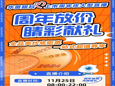 直播預(yù)告來襲!華廈眼科上市周年慶盛大開啟,更多好物大放價(jià),我們11月25日晚不見不散哦!
