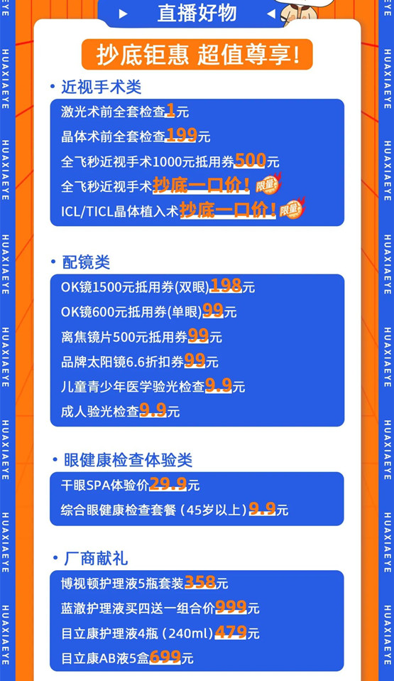 佛山華廈眼科直播預(yù)熱 激光術(shù)前全套檢查 1元開搶