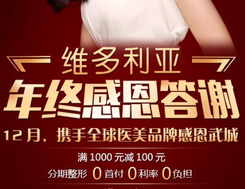 張家口維多利亞年終感恩答謝給大家送美容福利,雙眼皮、去眼袋、瘦臉注射等美容項目,價格超低,不要錯過喲。