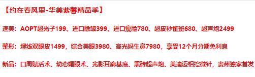 貴陽華美紫馨給大家送福利啦,AOPT超光子199、進(jìn)口除皺399,更多優(yōu)惠等著大家。