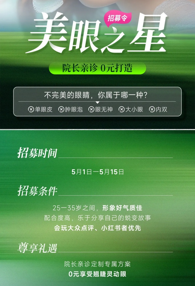 即日起-5月15日,「美眼之星」限時(shí)招募,等待你的到來(lái),滿(mǎn)足即可零元