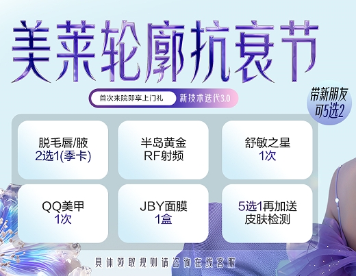 武漢美萊輪廓抗衰美學(xué)福利大促活動正在進(jìn)行中,帶新朋友,可享受5選2的福利,眾多美容項(xiàng)目,價格超低。