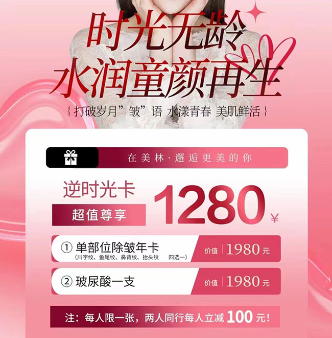 盤錦聯(lián)合美7月優(yōu)惠活動,逆時光卡超值尊享價1280,這么劃算的價格,買到就是賺到,活動時間:2024年7月1日-7月31日。