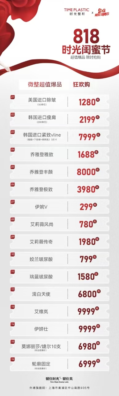上海時光818時光閨蜜節(jié)美容福利火爆登場,美膚超值爆品,限時特惠,顧客上門就有禮物送,想要變美,就趕緊來上海時光吧!