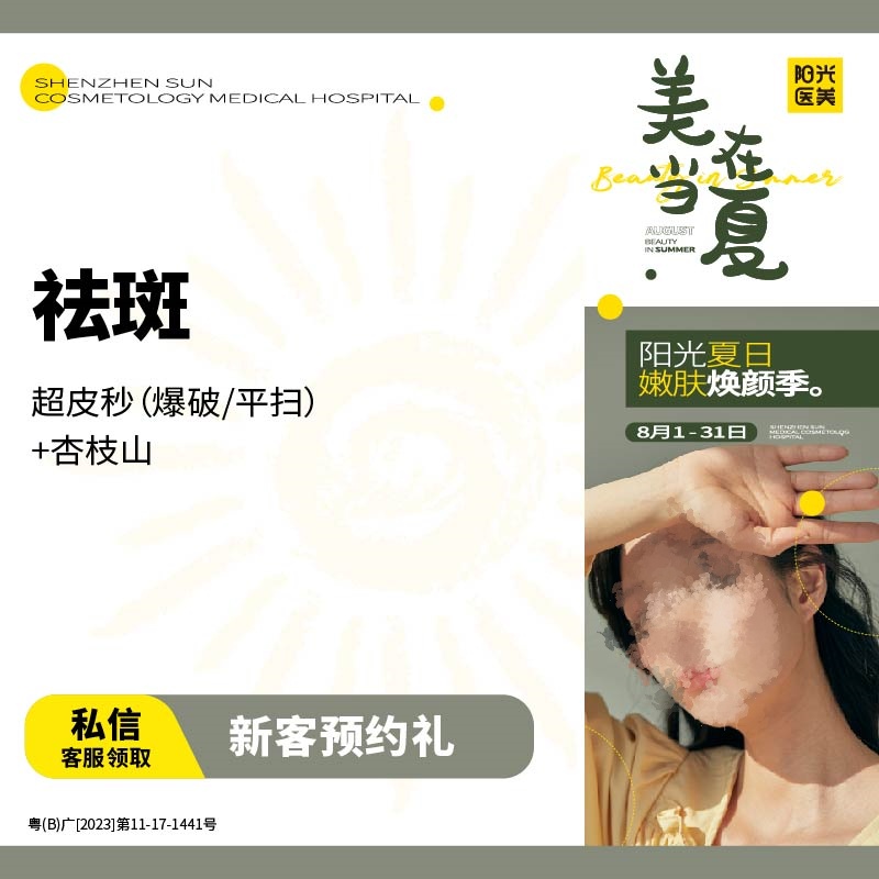 深圳陽光祛斑8月份特惠,秋季嫩膚,美在現(xiàn)在!活動(dòng)時(shí)間:2024年8月1日至2024年8月31日