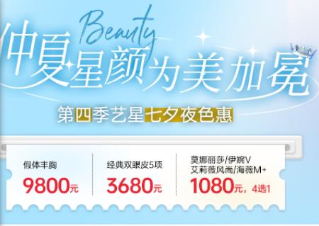 仲夏星顏為美加冕,武漢藝星七夕夜色惠活動(dòng)正在火熱進(jìn)行中,假體隆鼻手術(shù)9800元,經(jīng)典雙眼皮5項(xiàng)3680元,3000元美麗顏值金免費(fèi)領(lǐng),還有更多的美容優(yōu)惠,大家快來(lái)享受!