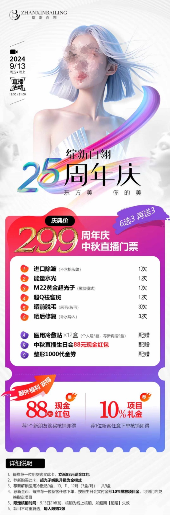 銅仁綻新白翎25周年慶,2024年9月13日,19.30直播,慶典價(jià)299元,六選三