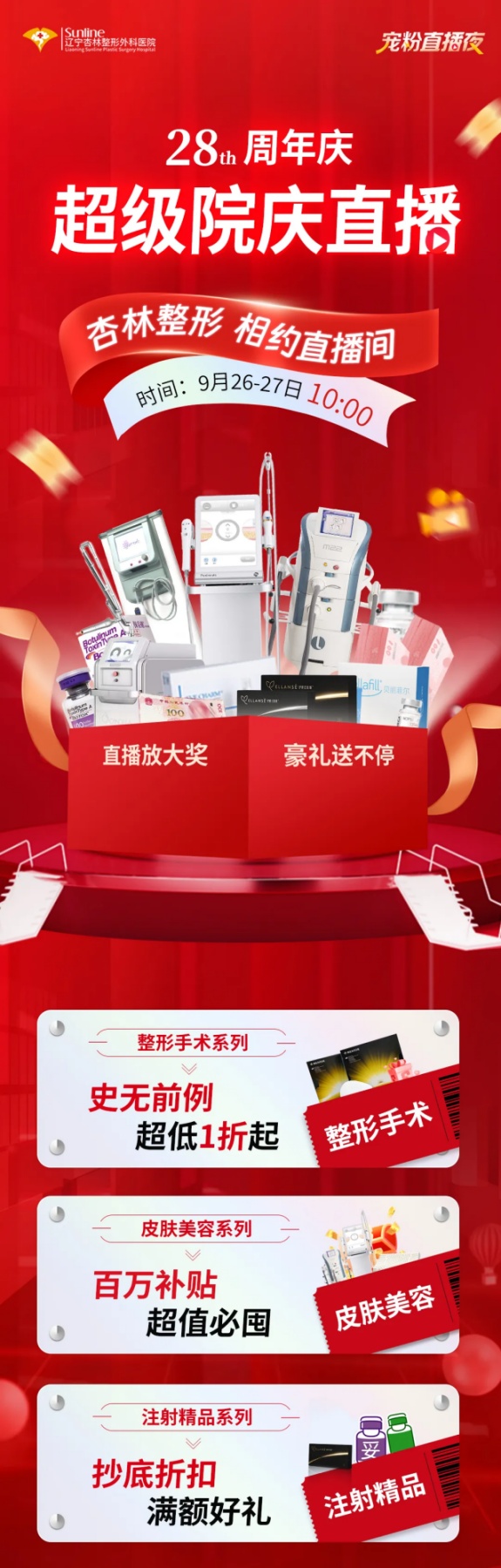 沈陽杏林整形醫(yī)院28周年,感恩回饋之禮,愿這場愛與美的盛宴點(diǎn)亮您的微笑,活動(dòng)時(shí)間:9月26日-9月27日