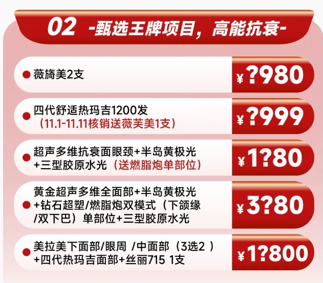 深圳陽光雙11大促來襲,第二天特惠,甄選王牌項目,高能抗衰,活動時間:11月1日-11月11日