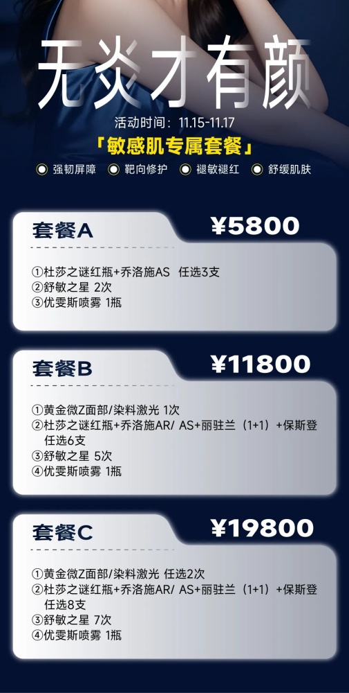 深圳陽(yáng)光為了幫助敏感肌成功上岸,11.15-11.17陽(yáng)光“無(wú)炎才有顏”活動(dòng)將推出三大「敏感肌專(zhuān)屬套餐」