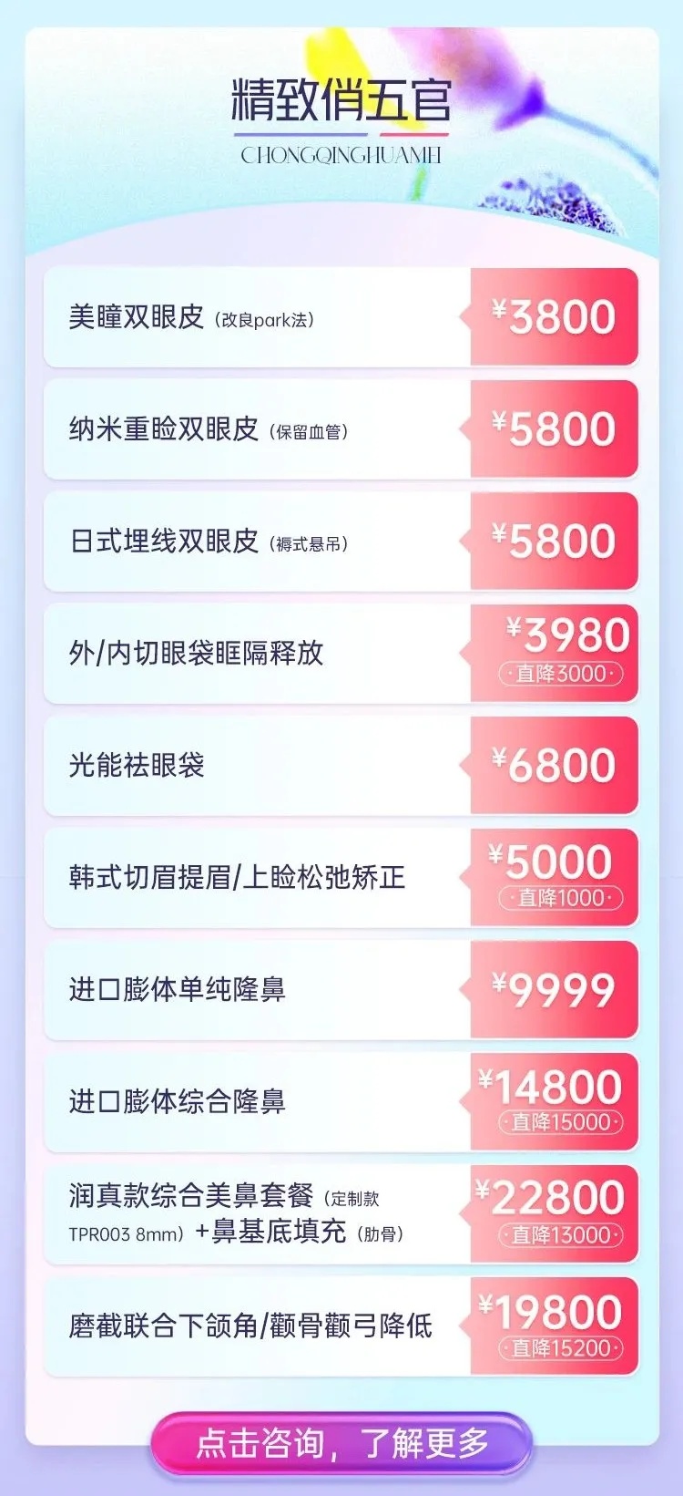 重慶華美周年慶已經(jīng)過半還有姐妹忘了薅羊毛嗎?五官爆品合集雙眼皮、祛眼袋、隆鼻、磨骨至高直省?15000+