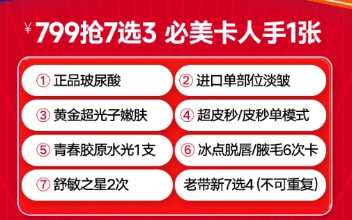 799元必美卡、999元剛需必買榜充值送送送、拼團還有禮……