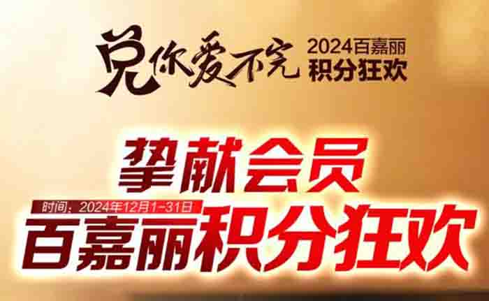 沈陽百嘉麗積分兌換活動開始了,特地微各位會員朋友們準(zhǔn)備了豐富的積分兌換活動,2024年12月31日前完成兌換