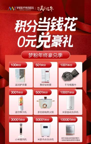叮~年度積分清0 倒計時預(yù)警,請及時兌換,@所有夢粉會員,您的年終積分即將于,1月25日24點清零,南寧夢想整形積分派兌狂歡,爆品、豪禮等你來兌。