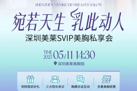 深圳美萊整形SVIP美胸私享會,開啟你的夏日蛻變之旅,五重好禮,美力轟炸,禮享豐盈預(yù)定你的夏日蛻變,活動時間:2025年5月11日14:30