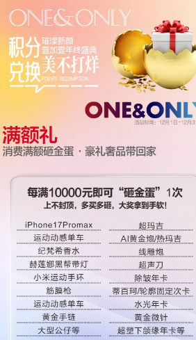 每消費(fèi)滿10,000元即獲一次砸金蛋機(jī)會(huì)