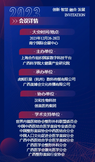 2023年12月26-28日在南寧舉辦的2023年上合組織國家-數(shù)字醫(yī)學(xué)(醫(yī)美)大會,大會將匯聚全球頂尖醫(yī)學(xué)專家、學(xué)者和業(yè)內(nèi)精英。特邀來自上合組織26個國家近百位權(quán)威醫(yī)療專家學(xué)者做主題分享,分享各領(lǐng)域數(shù)字醫(yī)療發(fā)展現(xiàn)狀,共同探討數(shù)字化醫(yī)學(xué)的最新技術(shù)。