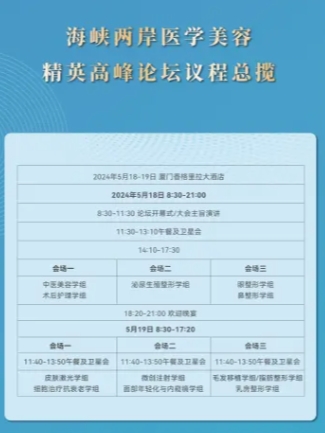 海峽兩岸醫(yī)學(xué)美容精英高峰論壇暨中國整形美容協(xié)會海峽兩岸分會第二屆學(xué)術(shù)年會于2024年5月18日-19日在廈門香格里拉大酒店召開。