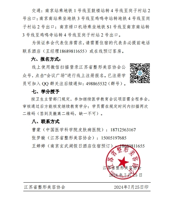 為推動(dòng)皮膚外科及皮膚美容事業(yè)的發(fā)展,經(jīng)協(xié)會(huì)研究,由江蘇省整形美容協(xié)會(huì)主辦、中國(guó)醫(yī)學(xué)科學(xué)院皮膚病醫(yī)院皮膚外科承辦的“皮膚外科與美容新技術(shù)新進(jìn)展學(xué)習(xí)班”定于2024年9月20-22日在江蘇省南京市召開。