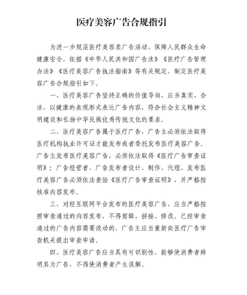廣告合規(guī)指引》《投資廣告合規(guī)指引》《醫(yī)療美容廣告合規(guī)指引》(以下簡稱《合規(guī)指引》)。