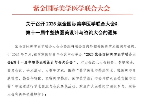 2025紫金國際美學(xué)醫(yī)學(xué)聯(lián)合大會(huì)&第十一屆中整協(xié)醫(yī)美設(shè)計(jì)與咨詢大會(huì)