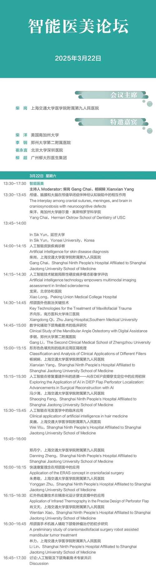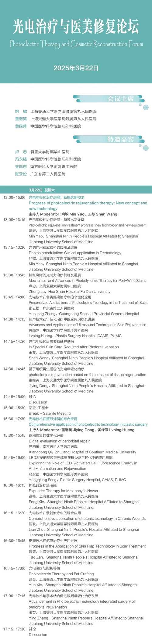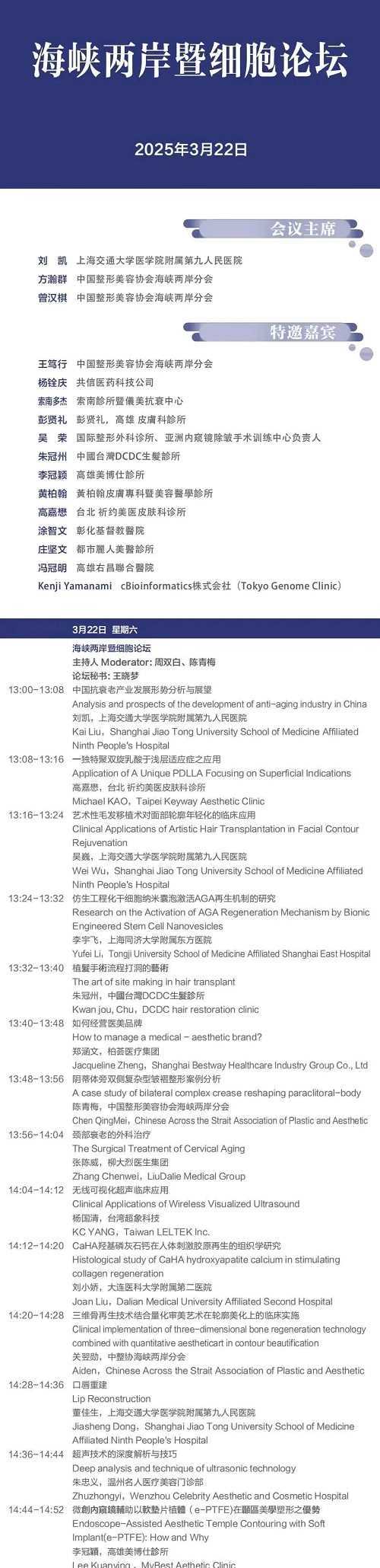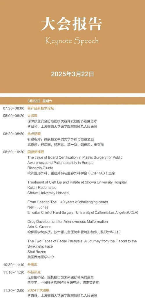 第14屆上海整形美容論壇暨第24屆上海國際整形美容外科大會,2025上海整形科技周議程。