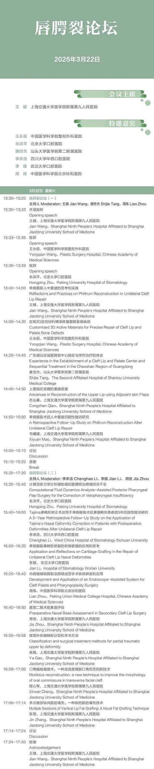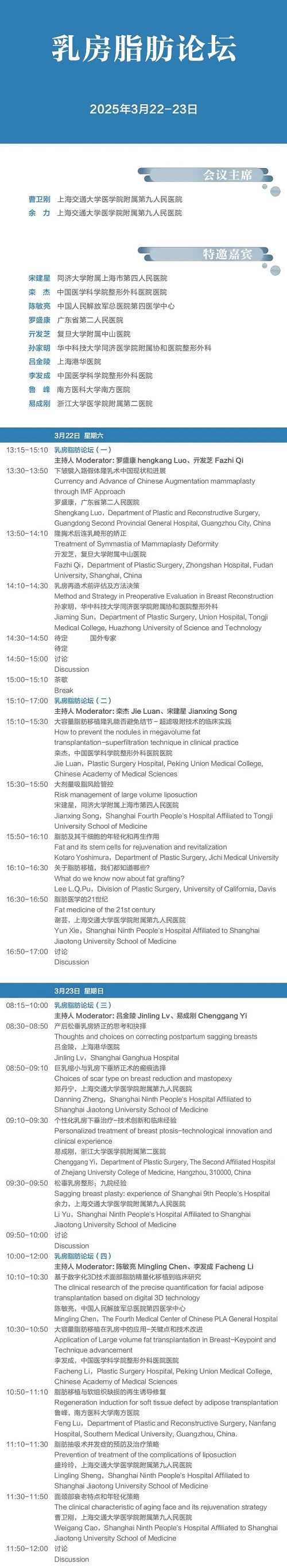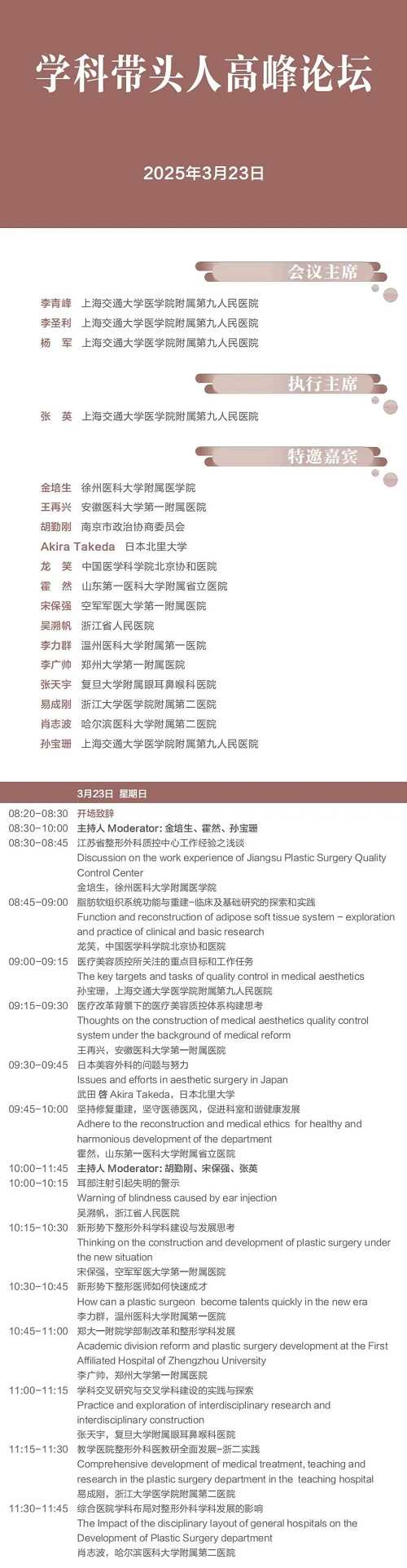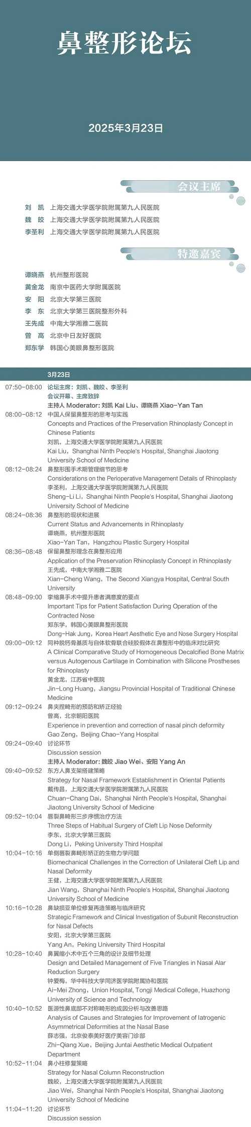 第14屆上海整形美容論壇暨第24屆上海國際整形美容外科大會,2025上海整形科技周議程。