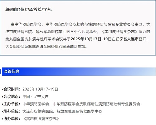 中華預(yù)防醫(yī)學(xué)會(huì)皮膚病與性病預(yù)防與控制專業(yè)委員會(huì)第九屆全國學(xué)術(shù)會(huì)議征稿通知