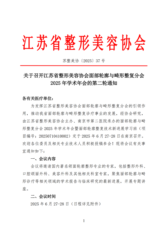 面部輪廓與畸形整復(fù)分會2025年學(xué)術(shù)年會將于2025年6月27-28日在南京召開